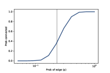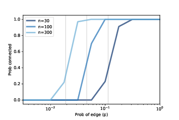 For given values of n and p, we would like to know the probability that G(n, p) is connected. We can estimate it by generating a large number of random graphs and counting how many are connected. Here’s how: