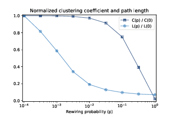 The probability that an edge is rewired is a parameter, p, that controls how random the graph is. With p=0, the graph is regular; with p=1 it is completely random. Watts and Strogatz found that small values of p yield graphs with high clustering, like a regular graph, and low path lengths, like a random graph. In this chapter I replicate the Watts and Strogatz experiment in the following steps: