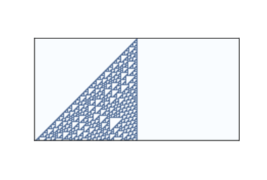 How many of these CAs are there? Since each cell is either on or off, we can specify the state of a cell with a single bit. In a neighborhood with three cells, there are 8 possible configurations, so there are 8 entries in the rule tables. And since each entry contains a single bit, we can specify a table using 8 bits. With 8 bits, we can specify 256 different rules. One of Wolfram’s first experiments with CAs was to test all 256 possibilities and classify them. Examining the results visually, he proposed that the behavior of CAs can be grouped into four classes. Class 1 contains the simplest (and least interesting) CAs, the ones that evolve from almost any starting condition to the same uniform pattern. As a trivial example, Rule 0 always generates an empty pattern after one time step. Rule 50 is an example of Class 2. It generates a simple pattern with nested structure, that is, a pattern that contains many smaller versions of itself. Rule 18 makes the nested structure is even clearer; Figure ?? shows what it looks like after 64 steps. This pattern resembles the Sierpiński triangle, which you can read about at http://thinkcomplex.com/sier. Some Class 2 CAs generate patterns that are intricate and pretty, but compared to Classes 3 and 4, they are relatively simple. 5.4 Randomness