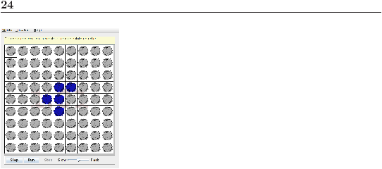 public void setDead() Write a constructor that invokes setDead and confirm that all Rocks are dead. 16.7 Simultaneous updatesIn the Game of Life, all Rocks are updated simultaneously; that is, each rock checks the status of its neighbors before any Rocks change their status. Otherwise the behavior of the system would depend on the order of the updates. In order to implement simultaneous updates, I suggest that you write an act method that has two phases: during the first phase, all Rocks count their neighbors and record the results; during the second phase, all Rocks update their status. Here’s what my act method looks like: /**
