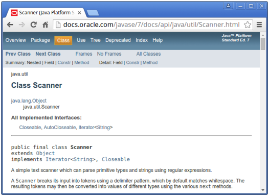 As an example, let’s look at the documentation for Scanner, a class we first used in Section 3.2.
