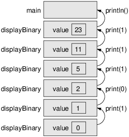In Section 4.5, we used a stack diagram to represent the state of a program during a method invocation. The same kind of diagram can make it easier to interpret a recursive method.
