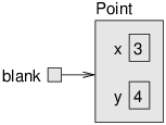 As usual, the name of the variable blank appears outside the box, and its value appears inside the box.