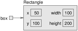 | Rectangle box1 = new Rectangle(0, 0, 100, 200); Rectangle box2 = box1; |