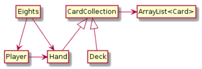| public class CardCollection { private String label; private ArrayList<Card> cards; public CardCollection(String label) { this.label = label; this.cards = new ArrayList<Card>(); } } |