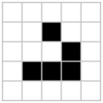The game board is a 2D grid of square cells. Each cell is either “alive” or “dead”; the color of the cell indicates its state. Figure 15.1 shows an example grid configuration; the five black cells are alive.