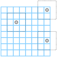 Figure 15.5: Cells in the interior of the grid have eight neighbors. Cells in the corners and along the edges have fewer neighbors.